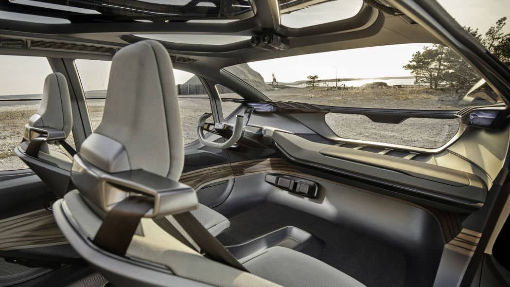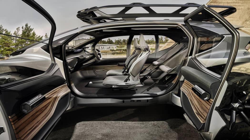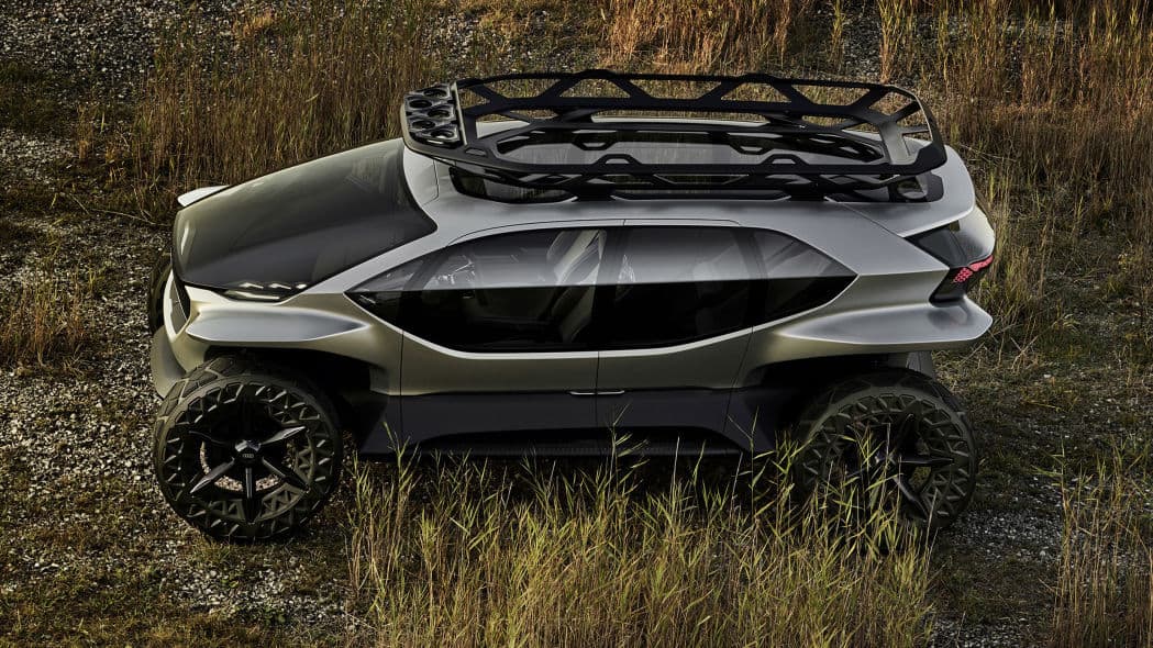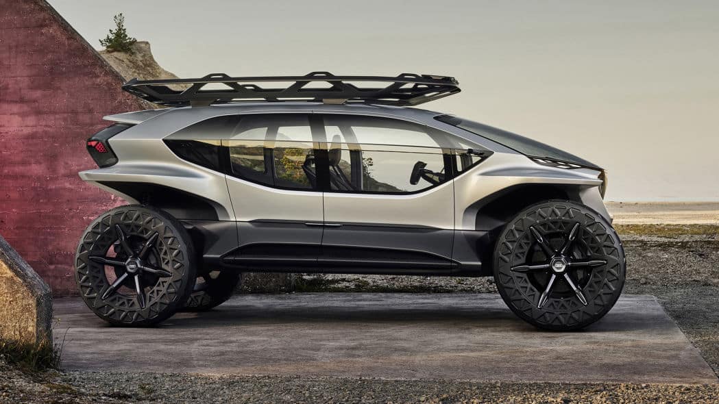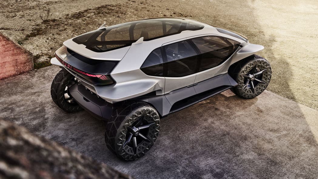 这是一款很有能力的越野车。随着轮胎设计被推到车身最边缘并且没有任何保险杠覆盖它们,接近和离去角度非常大。它还拥有 13.4 英寸的离地间隙,比 Jeep Wrangler Rubicon 或 Land Rover Defender 都要多。奥迪说它能够通过高达 1.6 英尺的水。轮胎本身就是传统充气轮胎和米其林 Michelin Tweel 的混合物,汽车可以自动调节轮胎压力以获得最佳牵引力。