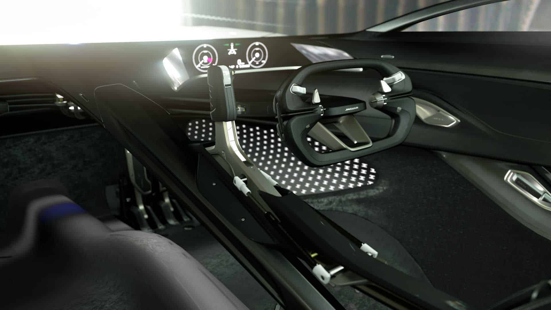 Jaguar Vision Gran Turismo 即将在 11 月底进入虚拟赛车世界,它几乎是不可能的低矮而紧身的两扇门,里面装有三个电动机,它们共同产生了 1,005 马力和 885 磅英尺的巨大功率及扭矩。在游戏中,它会在不到两秒钟的时间内达到每小时 62 英里的速度,并以每小时 200 英里的速度进行行驶。伴随着这一步伐,捷豹向游戏玩家承诺 “完美平衡的操控性” 。它的秤重为 3086 磅。