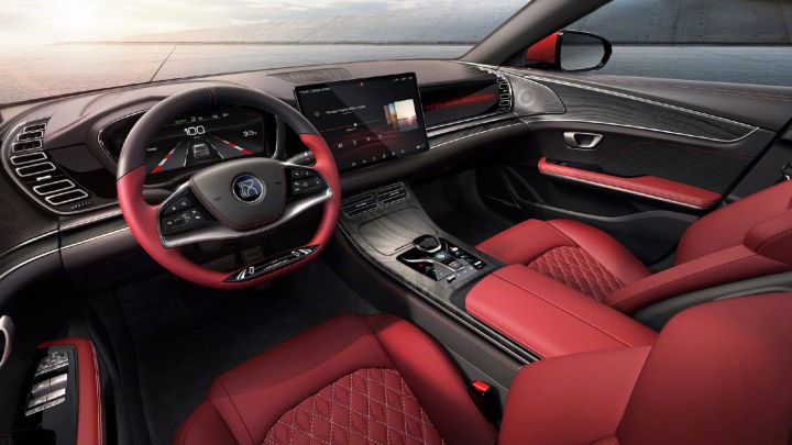 比亚迪汉内饰官方图发布,透射出浓浓的中国红黑风格
