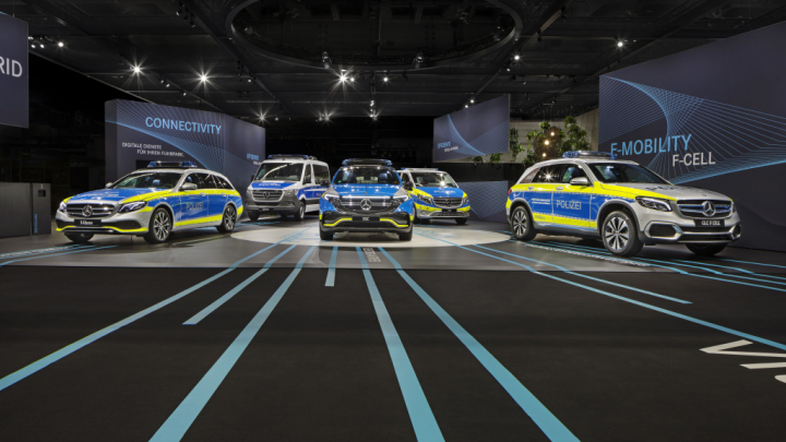 奔驰在通用警察装备展览会上展示多款电动汽车,为警车绿色加码